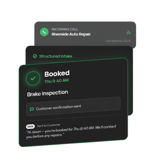 And the phone is the entry point to everything. If you want to see how Alyx fits your process, you can request access and we'll map it to your real booking rules — not some template.